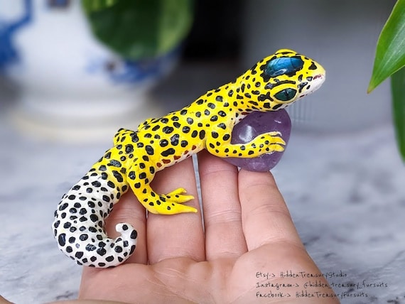 Leopard Gecko Polymer Clay Skulptur Mit Amethyst Labradorit Etsy De
